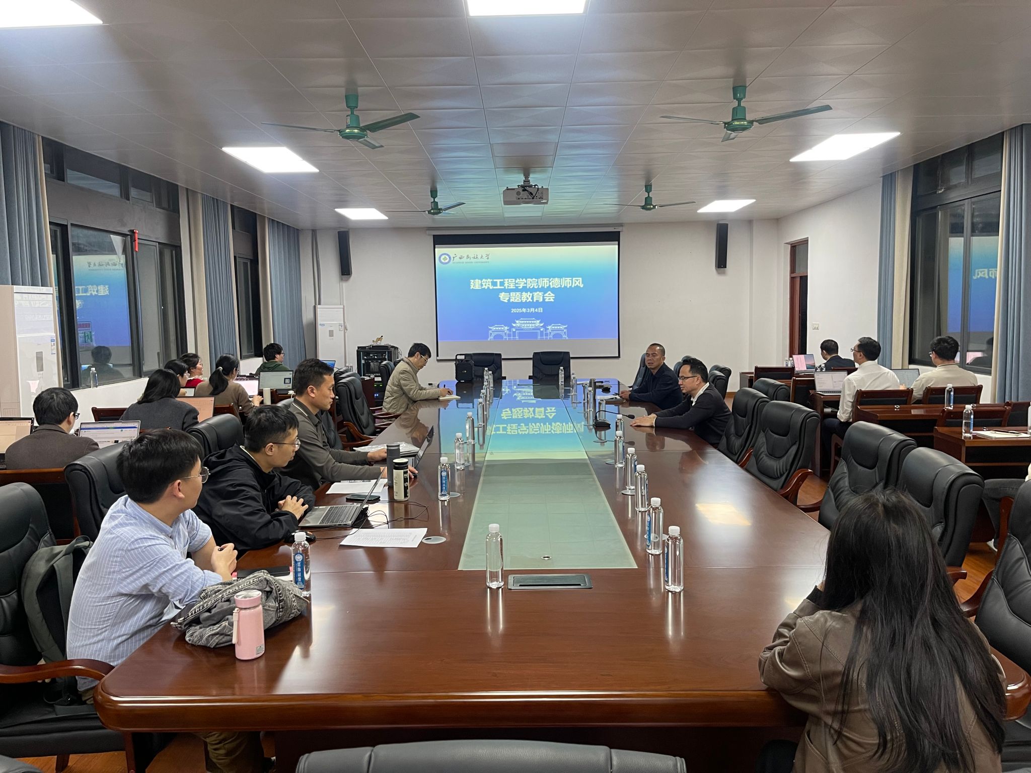 党委副书记邱武就员工工作进行布置,他强调要把员工安全放在首位,多关心员工,教师要多下课堂、下宿舍,密切关注员工心理健康状况。此外,邱副书记开展了师德师风专题教育会,要求全院上下加强师德师风建设,全体教师要严格遵守教师职业道德规范,以身作则,为人师表。