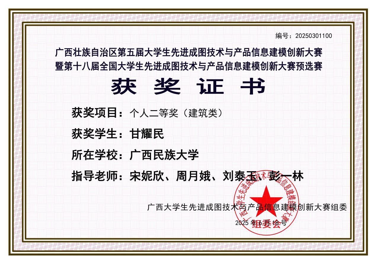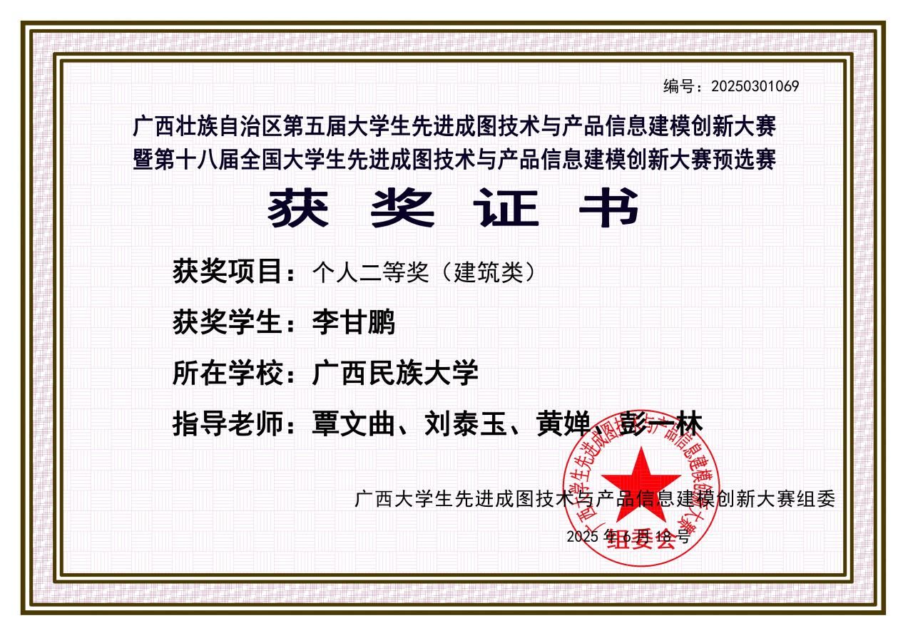 李甘鹏、甘耀民两位同学分别斩获个人二等奖,彰显了在工程制图与数字化设计方面的卓越能力。