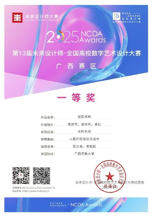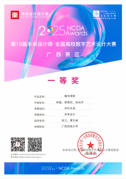 在刚刚落幕的2025年第13届未来设计师·全国高校数字艺术设计大赛(NCDA) 中,bevictor伟德官网学子表现卓越,不仅在广西赛区荣获4项一等奖、1项二等奖、1项三等奖,更在全国总决赛中勇夺全国一等奖1项、二等奖1项、三等奖1项的优异成绩,充分体现了公司在数字艺术设计教育和创新人才培养方面的显著成效。