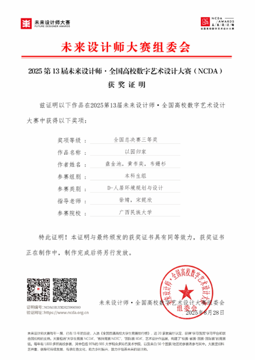 《以园归家》——盘金池、黄书奕、韦姗杉(指导教师:徐婧、宋妮欣)
