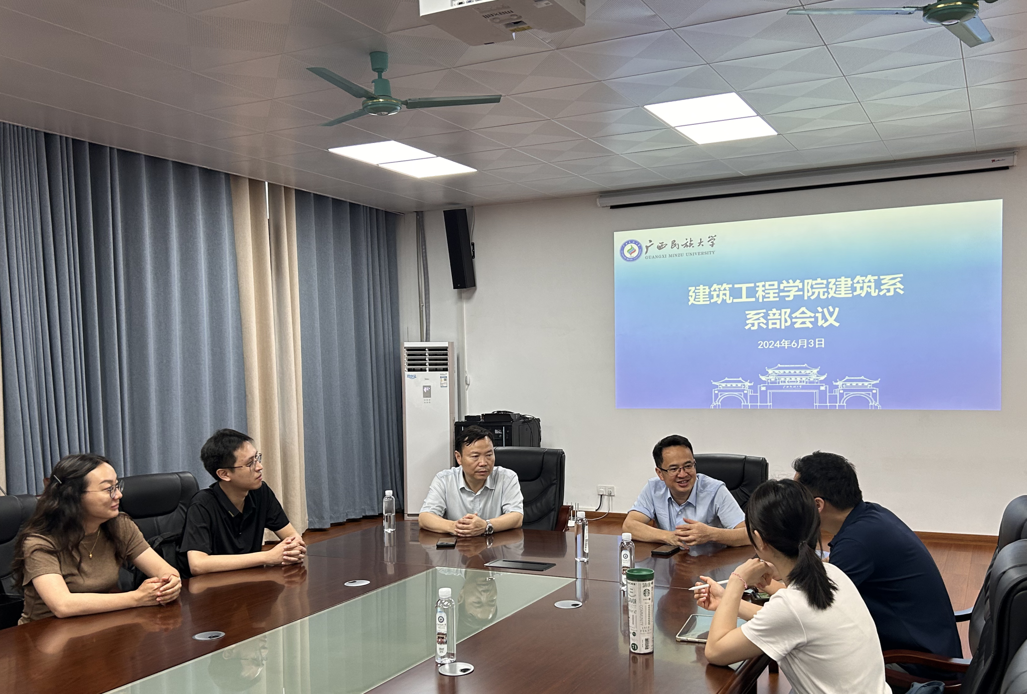 会上,覃英宏首先提出建筑学系应当落实习近平总书记在广西考察时作出的重要指示,“释放‘海’的潜力,激发‘江’的活力,做足‘边’的文章”,以铸牢中华民族共同体意识为主线,集中系部力量打造专业特色,明确指出发展数字化建筑、民族建筑新方向,将人工智能、机器学习、乡村振兴等内容融入教学,以应对加快建设发展新工科的要求,主动融入和服务国家发展新格局。随后,经理就科研项目、人才培养等方面内容明确了工作具体要求。